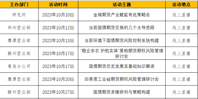 金瑞期货2023年10月份活动计划