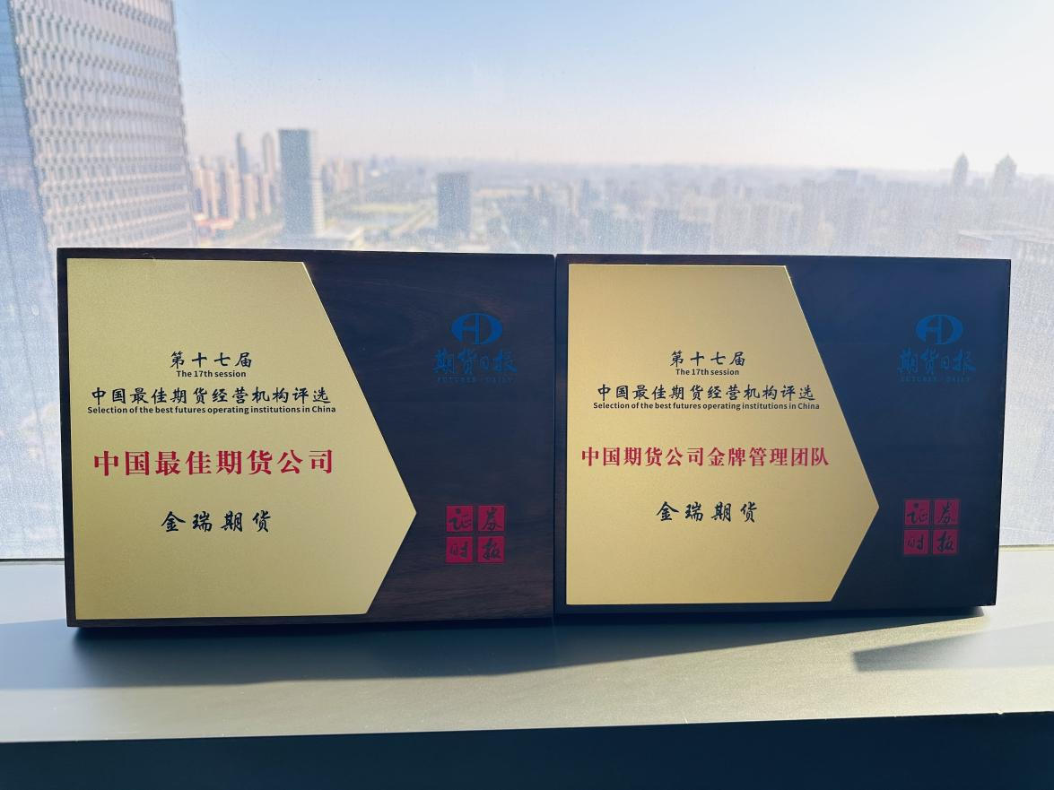 2024年11月27日,由期货日报、证券时报共同主办的“2024年期货业高质量发展创新研讨会暨第十七届最佳期货经营机构评选颁奖典礼”在南京举行。今年的评选中,金瑞期货荣获“中国最佳期货公司”等十项大奖,其中包括两项期货研究团队奖,广州分公司获评“中国最佳期货经营分支机构”。