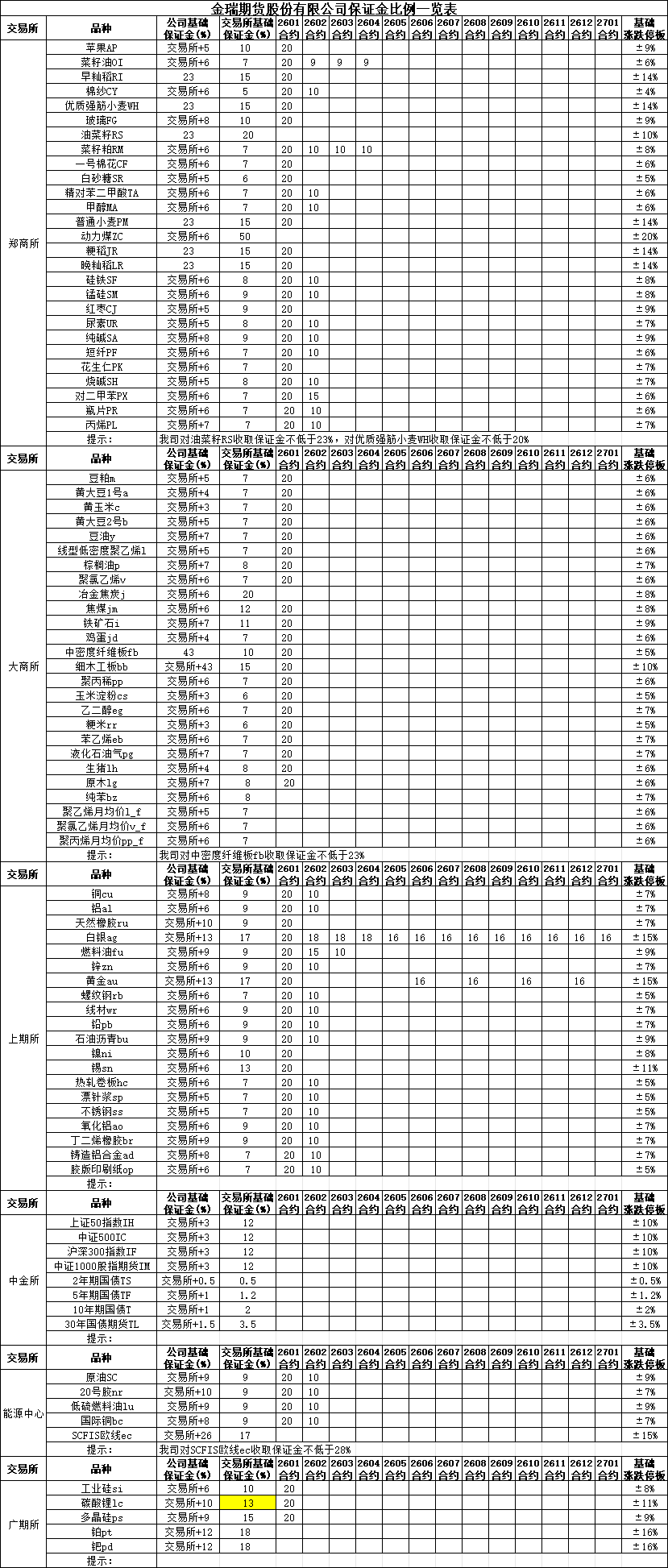 保证金比例提示2026-01-22